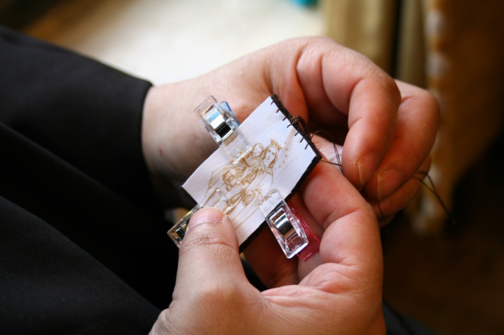 Le travail de nos mains s’effectue dans le silence et la prière, en solitude. Nous essayons d’y trouver le Seigneur pour le donner aux autres par l’offrande de cette activité. C’est une facette de la communion des saints !