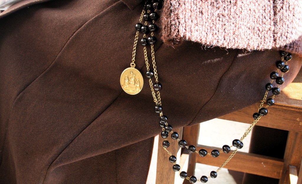Nous vivons donc encore aujourd’hui cette vie communautaire très profonde – les repas sont pris en commun en silence tandis que le plus souvent une sœur fait la lecture, il y a deux heures de récréations toutes ensemble par jour, ainsi que les Offices, des temps d’oraison et la messe que nous vivons en communauté -, et à la fois une vraie vie de solitude qui se manifeste par divers aspects : le plus souvent nous travaillons seules, nous avons des temps de retraite personnelle, nous essayons de vivre dans un climat de silence et de recueillement, nous avons de nombreux oratoires ou « ermitages » dans la maison et le jardin où nous pouvons nous recueillir librement…